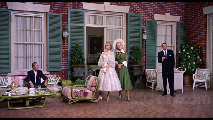 For those in a hurry, Warner Archive's new restoration of High Society is one of the best I've seen on this format and already secures it a high spot in this year's best-looking discs -- it's every bit as impressive as the one undertaken for The Searchers as well as WB's similarly top-tier treatment of North by Northwest. The common thread here is that all three were filmed in VistaVision, a higher-resolution process first used in 1954 that involves turning 35mm film stock on its side; this changes the "full screen" aspect ratio to approximately 1.5:1 which can be further cropped for wider presentations, and increases potential resolution to roughly double that of the traditional vertical process.