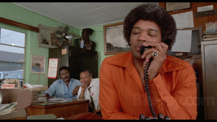This DTS-HD 2.0 Master Audio mix follows suit with an equally crisp and stable presentation of Hit Man's original mono soundtrack in a split-channel container, which obviously doesn't shoot for the moon but has no problems handing the film's wildly varying tones and locations. Dialogue is decently prioritized, as are the sound effects and original score by pianist, record producer, and occasional actor H.B. Barnum, who made his feature film composing debut here and would contribute music to Five on the Black Hand Side the following year. Overall, this is fine work indeed and, like the best vintage audio restorations, doesn't call a lot of attention to itself and simply gets the job done.