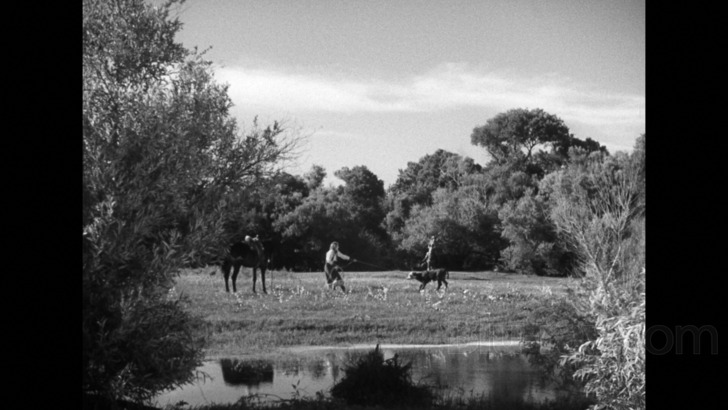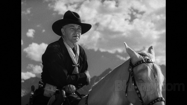 Hop-a-Long Cassidy features a DTS-HD Master Audio 2.0 Mono track that can't escape the vagaries of its recording era. The high end is a little brash, something that's probably most apparent in some of the blaring brass scoring, and there's pretty noticeable hiss throughout the presentation. Still, dialogue is presented cleanly and clearly and sound effects like galloping horse hooves or gunshots reverberate decently, if not amazingly. Optional English subtitles are available.