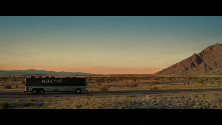 I Can Only Imagine 2 is presented on Blu-ray courtesy of Lionsgate Films with an AVC encoded 1080p transfer in 2.39:1. As of the writing of this review, there's really not much technical information available online, but this is a nice looking digital capture that I suspect had a 2K DI. Clarity is consistent throughout, and unlike the first film there are some rather interesting grading and lighting choices that suffuse things, including a lot of blue tinged material (admittedly kind of like the first film) in the concert footage in particular, but also with some almost "golden hour" yellows in a number of other moments. Some of the scenic (assumed) drone shots are especially nice looking, with "all American" vistas unfolding behind the tour bus. Close-ups deliver commendable detail levels. I'm wondering if some interior aerial material of concerts may have been done with a GoPro or something a bit less hi res and maybe even prone to aliasing artifacts than the bulk of the presentation, but those moments are fleeting.