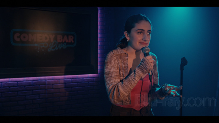 The AVC encoded image (2.00:1 aspect ratio) presentation for "I Used to Be Funny" offers excellent detail, capturing skin particulars on the cast and their states of distress. Costuming remains fibrous. Living spaces are open for exploration, with defined decoration. Exteriors maintain depth. Colors are alert, preserving changes in mood as depressive blues and sunnier yellows are visited. Fashion brings out brighter primaries, joined by comedy club stage lighting, and hair color is appreciable. Skin tones are natural. Greenery is distinct. Delineation is satisfactory. Brief, very mild banding is detected.