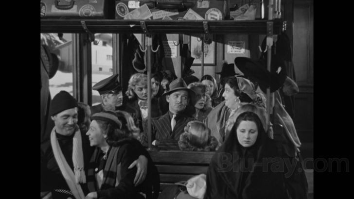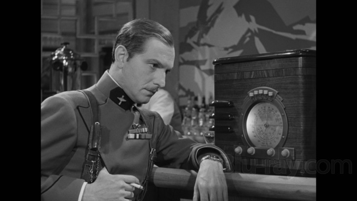 Warner Archive's exclusive 1080p transfer of Idiot's Delight is advertised as being "sourced from the best-available preservation elements", which typically indicates a mixture of sources that often include the original camera negative. Indeed, much of the film features fine detail and textural levels consistent with a nitrate negative, especially the visible film grain and silvery contrast levels, while a handful of shots and moments dip slightly in quality with visual giveaways such as softer detail levels, slightly chunkier grain, and trace amounts of white blooming. It's all handled extraordinarily well, of course, and the majority of viewers won't be distracted at all despite a small handful of visual seams. Much of this has to do with excellent disc encoding and especially Warner Archive's proprietary manual cleanup, which as usual removes virtually every perceivable speck of dirt and debris while leaving organic film grain intact. The main feature runs at a very supportive bit rate from start to finish on this dual-layered disc, allowing Idiot's Delight to sit in the upper tier of catalog Blu-ray restorations alongside the bulk of Warner Archive's output from this era.