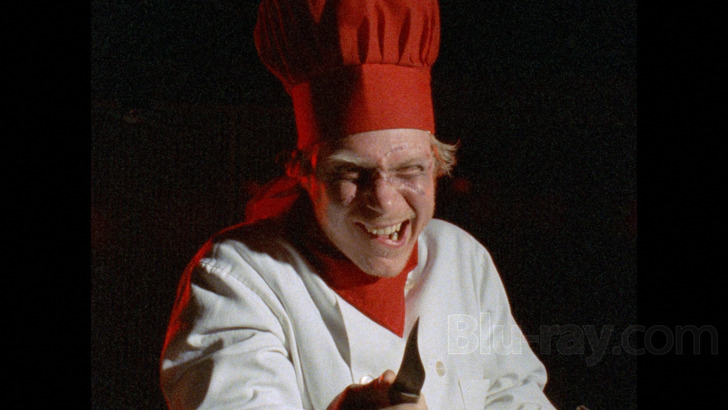 The 2.0 DTS-HD MA shows its age during the listening event. Damage is also detected, finding sibilance issues present during dialogue exchanges. Intelligibility isn't threatened (most of the performances are sold through yelling). Music has its limitations as well, but a basic sense of synth accompaniment is retained. Sound effects are blunt.