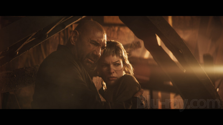 The DTS-HD 5.1 Master Audio (which, like many Vertical Entertainment titles, is also available in a downmixed lossless 2.0 Stereo track for some reason), likewise pulls most of its own weight with a decently enveloping sound stage that prioritizes post-apocalyptic atmospheric elements, occasional dynamic action scenes, and the on-the-nose original score by Paul Haslinger, though dialogue is occasionally buried a bit in the mix. It's also a bit light at times with surprisingly limited use of LFE elements during what should be more substantial moments, but that's more of a personal preference and doesn't seem like an outright flaw of either track. I'll chalk this one up as a "soft win"; it's nothing groundbreaking or worth blasting at full "demo disc" volume, but more than decent enough for what it is.