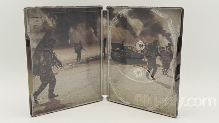 Opening the SteelBook, the tabs on the left secure the Digital Copy. On the right side, the 4K UHD disc and the Blu-ray disc, each containing the feature