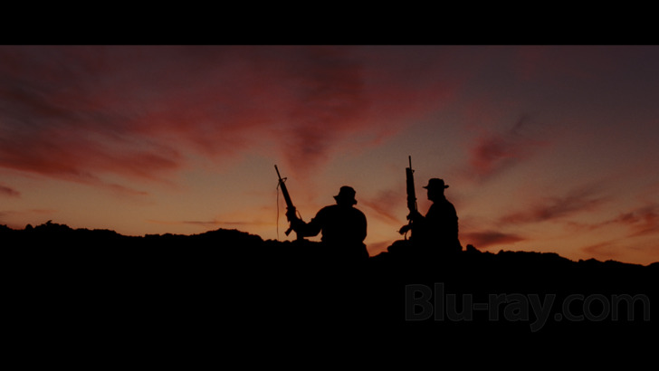 brief shot of soldiers silhouetted against the sunset provides some lush, for this film at least, reds, oranges, and purples and is an early visual highlight.
