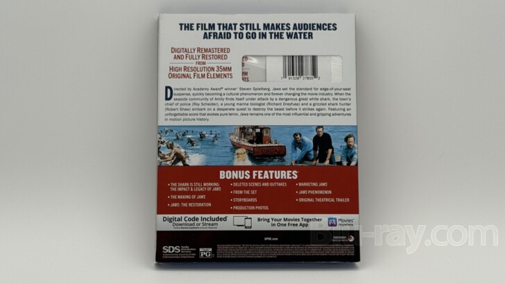 In time for the 50th Anniversary of the landmark film, 'Jaws' returns to Blu-ray disc in this Walmart Exclusive TV Screen Slipcover Edition. This release features same disc found in this release, from over a decade ago. and as such shares the same audio and video presentations, as well as the on-disc supplemental features. Along with the 1080p Blu-ray disc, this slipcovered release includes a Digital Code redeemable through Movies Anywhere. For a discussion of the slipcover, please scroll down to the 'Special Features and Extras' section.