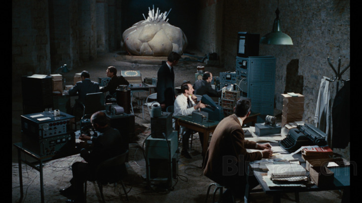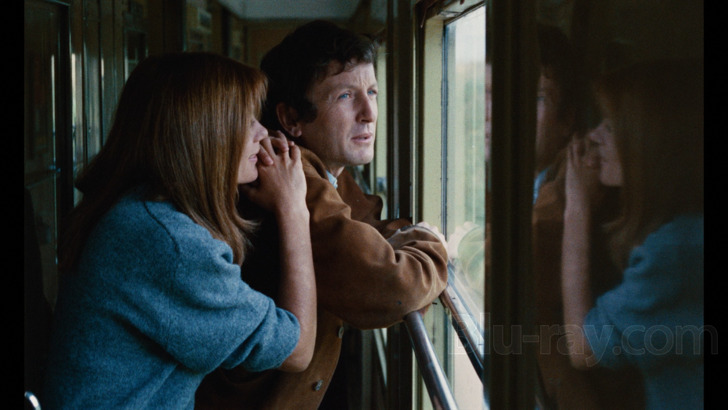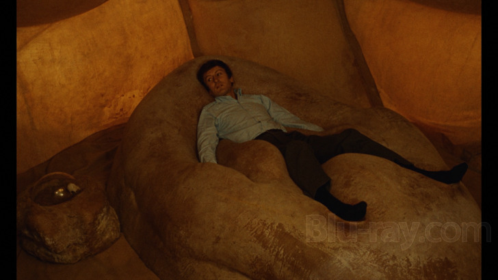 Je t'aime, Je t'aime is presented on Blu-ray courtesy of Radiance Films with an AVC encoded 1080p transfer in 1.66:1. Radiance only sent a check disc for purposes of this review and so I'm not privy to any verbiage an insert booklet might have, and their website offers only a "2K restoration presented on UK Blu-ray for the first time". Some prefatory text information before the main feature here suggests this was culled from the same restoration that provided the source for the Region A Kino Lorber Je t'aime, je t'aime that came out a decade ago (!) and which now looks like it may be hard to come by. That said, doing even a cursory comparison of screenshots between this review and Svet's review of the Kino Lorber release can show how radically different the color timing is on this release, and I'd argue redounding to the benefit of this release. Yes, things are still very cool looking at times, with, as Svet mentioned in his comments about the Kino Lorber release, an emphasis on blues and slate grays (especially in some of the cave material where this film's, um, Time Tunnel (Time Mushroom? Time Onion?) resides, but just compare screenshot 1 of this review with screenshot 2 of Svet's review for just one example of how much warmer this presentation is overall. There are several other examples available for those wanting to parse through the combined screenshots. I found grain to be a bit more variant looking here than Svet evidently did with regard to the Kino Lorber release, but nothing struck me as inorganic or problematic with regard to compression.