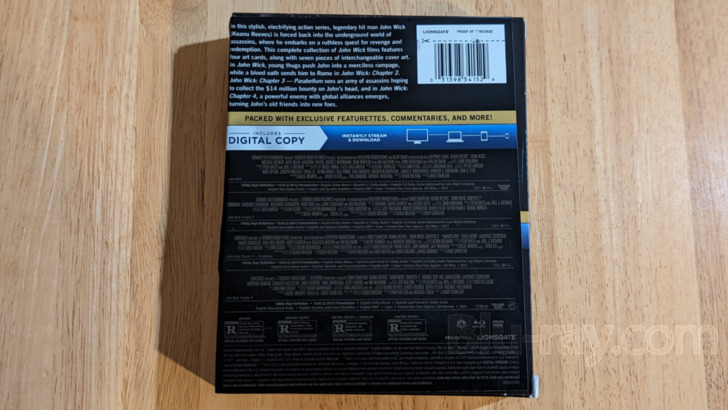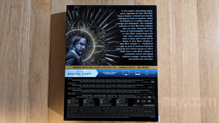 Lionsgate is offering collectors of special editions a chance to either get the first four John Wick films aggregated in some nicely designed packaging, or to perhaps splurge and re- buy the films in order to get the packaging. I've given a description of this new set in the supplements sections, below. Otherwise, the actual discs unsurprisingly repeat Lionsgate's previous releases of the films.