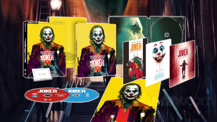 Todd Phillips’ Joker has received no shortage of 4K/Blu-ray packaging variants in the U.S. and abroad, including multiple Steelbooks, but this 2024 French-released Collector’s Edition from Warner Bros. is one of the better ones. Housed in a bold yellow and black slipcase containing a Steelbook and several printed goodies, it’s currently available from Amazon France for a tempting discount that, US shipping included, isn’t much more than your average domestic release of the same type. All on-disc contents are completely identical to WB’s standard domestic 4K/Blu-ray combo pack, but die-hard fans of the film and packaging junkies may nonetheless find this one very easy to fall for.