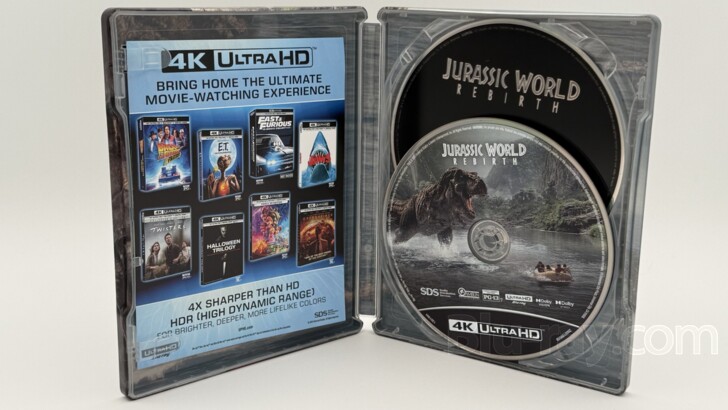 Starting over with a new cast of characters and making a few tweaks to the established formula, Jurassic World: Rebirth delivers the kind of entertainment viewers expect when selecting a film with the word "Jurassic" in its title. Johansson capably shoulders much of the heavy lifting here and is poised to be an action star in her own right outside of the Marvel Cinematic Universe. Both she and the film are never less than entertaining. Bailey and Ali also perform admirably, and hopefully, some mix of the three of them will be on hand for the seemingly inevitable next installment. The addition of a host of new dinosaurs is most welcome, and each is showcased in its own impressive action sequence. Given an excellent 2160p presentation and an immersive, nuanced, and room-shaking Dolby Atmos track, Jurassic World: Rebirth 4K is a fast paced action-adventure film, and the new SteelBook captures the spirit of the film extremely well - both inside and out. This release is strongly recommended to franchise fans and SteelBook collector's alike.