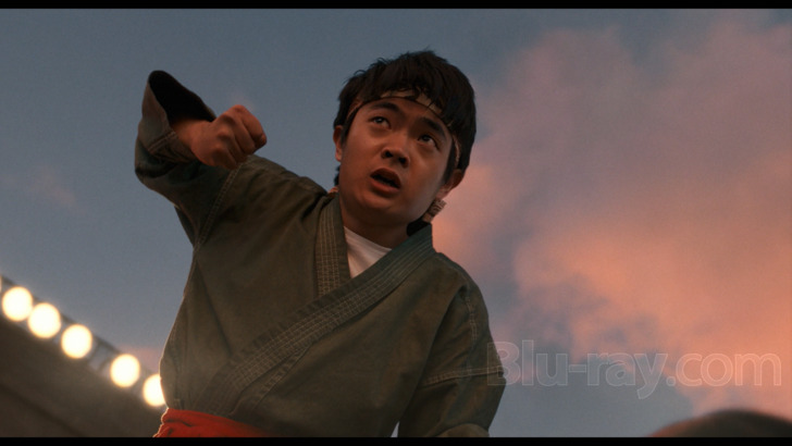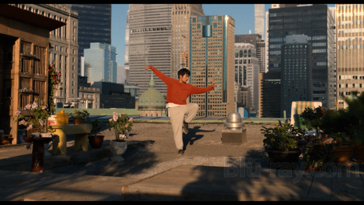 For this UHD release of Karate Kid: Legends, Sony has included a Dolby Atmos soundtrack (that day-and-date companion release Blu-ray only includes a DTS-HD Master Audio 5.1 lossless soundtrack). The differences between the tracks are clearly not night-and-day, but the added surround envelopment and overhead support definitely make this track stand above the other. As already noted, the differences are relatively minor, with the sense of fullness more palpable at every opportunity of expansion, especially on city streets and in crowded and noisy environments (the boxing match midway through, the rooftop fight sequence at film's end). They just breathe more easily, offering more fluid and faithful expression to the elements that more seamlessly draw the listener into those places. But even city streets and not-so-busy locals (training rooftop scenes with Li, Daniel, and Mr, Han, for example) feel more airy and spacious. There's not a huge difference in terms of base clarity, definition, or subwoofer extension. The Atmos track is more alive, but I don't think those who can only listen in 5.1 are being grossly short-changed, either.