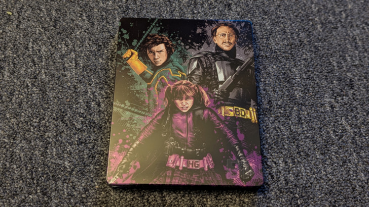 Lionsgate Limited is potentially throwing prospective consumers for yet another loop, at least for those looking for some kind of "branding" consistency in their releases, which are especially unusual this month. Among the peculiarities is this "15th Anniversary" edition of Kick-Ass in new SteelBook packaging, a film which Lionsgate previously released in a combo 4K / 1080 package way back in 2017 (I link to my review, below). While the disc in this package has new silk screened art and boots to a new menu image, while also offering some new supplements, presentationally this struck me as identical to the previous release. Adding to the "intrigue" (at least for marketing majors) is the fact that in this particular instance, Lionsgate does not include a 1080 disc. Because this is basically a repackaging, this review will simply offer hi res photos of the SteelBook, as well as a list of supplements.