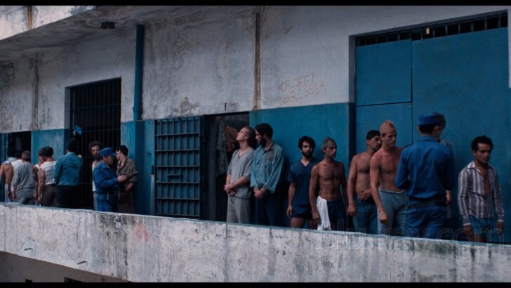 All visuals look very healthy and boast excellent density levels. On a large screen, they can look very impressive. However, a closer inspection reveals several issues. For example, plenty of darker nuances are either unconvincing, flattened, or lost, and in numerous areas, the previous presentation of the film produces more and better detail. You can see the difference if you compare this screencapture and this screencapture (focus on the metal door). Some of the footage from cell also looks too dark. See an example here. Additionally, new the color grade pushes primary blue and blue nuances toward turquoise/teal, and as a result various sections of the film now have an unmissable contemporary appearance. I think that this is a bigger problem because some of the less-than-optimal and flattened darker nuances are pretty easy to ignore. The Dolby Vision grade has an impact on the darker footage, too, which the 1080p presentation usually handles marginally better. There are no traces of any problematic digital corrections, such as degraining, sharpening, etc. The entire film looks spotless. My score is 3.25/5.00.