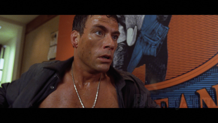 Knock Off features DTS-HD Master Audio 5.1 and LPCM 2.0 options. The film has some appealing music, including by the pop duo Sparks, and it features an early scene with Van Damme himself singing along to the radio. The scoring has an audibly more spacious presentation in the surround track, and the 5.1 track also significantly opens up the action set pieces, including delivering a more reverberant accounting of things like explosions. Dialogue is rendered cleanly and clearly throughout. Forced English subtitles (somewhat hilariously with quotes surrounding the dialogue) accompany some of the Chinese language segments, and otherwise optional English subtitles are available for the rest of the presentation.