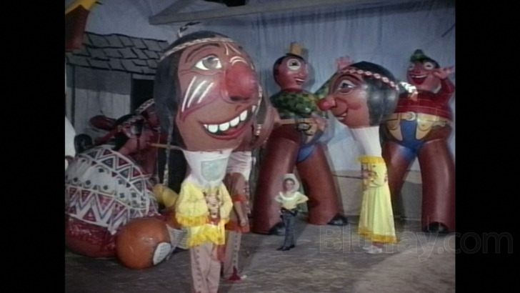 "Polly Pockets" is an episode of television (complete with three commercial breaks), playing very much like something created to babysit little viewers. The rest attempt to be more cinematic, especially the Russian production "Kingdom of the Crooked Mirrors," which offers little in the way of drama, but moviemaking hustle is on full display for the fantasy offering, remaining in line with other Soviet-era big screen fantasies of the day. "Fun in Balloon Land" is a real endurance test, but for those in the mood for a parade, the film literally stops to offer one (the endeavor was superbly roasted in a 2014 release from Rifftrax). Slightly more interesting is "The Princess and the Magic Frog," which carries interesting emotional darkness as it tries to work out the details of its magical journey. And "The Big Bad Wolf" bests them all with its complete commitment to disturbing visuals and Grimm-style fairytale turns, really holding attention as it takes on bedtime story horrors. "Krazee Kidz Video Party" probably isn't meant to be fully absorbed during a single sit (though that option exists on the disc), but for those adventurous enough, or simply want a hit of nostalgia, the release scratches that itch, getting back to the simple days of B-movies generated for a captive audience.