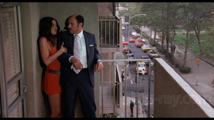 The AVC encoded image (1.85:1 aspect ratio) presentation is listed as a "new 4K restoration from its original camera negative." "Last of the Red Hot Lovers" is not an especially lively picture, but the viewing experience remains wonderfully cinematic, with nicely resolved grain. Colors are deep, delivering defined primaries on decorative additions and costuming. New York City hues are also sharp, exploring the coldness of the streets and the brightness of signage. Greenery is distinct. Skin tones are natural. Detail is strong, examining textured outfits and apartment furniture. Skin particulars are also open for inspection. Interiors maintain depth as the action weaves around the central apartment setting. Exteriors are limited, but offer dimension. Delineation is satisfactory. Source is in good condition.