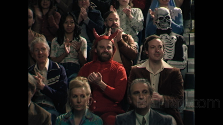 But that quoted word above is unusually important in this case, as Late Night With the Devil's convincing faux-1970s veneer rarely looks to emulate 4K visual perfection. (The found footage is purported to be from a "master tape", which is clearly digital in origin with added sweetening to resemble a pristine analog source that's occasionally interrupted by tracking issues and similar anomalies directly related to certain on-screen actions.) Other segments like the black-and-white "behind-the-scenes" clips look more filmic in nature, while much grungier stock footage can be seen during the opening montage. Where this 4K presentation excels, even without HDR, is that its tighter appearance and beefier bit rate help to separate these elements more strongly because, at their best, they really do look impressive. However, I also appreciate the Blu-ray's more unavoidably homogenous appearance due to its lower resolution... and while I can't say for sure which version I prefer, it's nice to have both options at once. Even so, the 4K's lack of HDR makes this a much closer relative to the existing Blu-ray than any other UHD edition, for better or for worse.