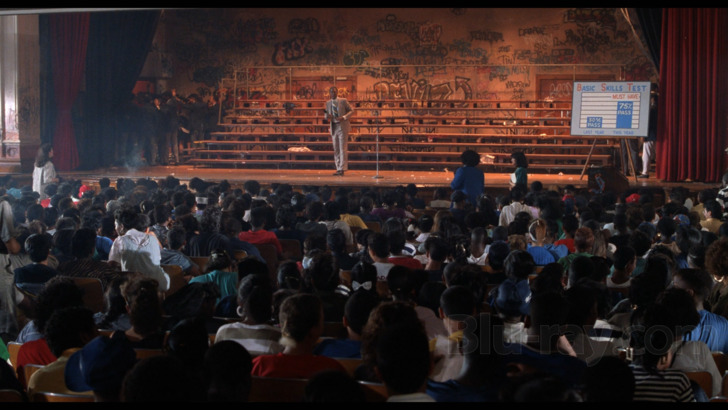 Keeping pace is the DTS-HD 2.0 Master Audio mix, presented in its original stereo and displaying excellent overall fidelity at all the most crucial moments. Not surprisingly, Lean on Me gets pretty rowdy at times with no shortage of loud conversations, shouting matches, and horrific behavioral scenarios that would've made great use of the surrounds had it been filmed 10 years later. But even as a two-channel presentation, this is a durable and well-appointed effort that's perfectly balanced with crisp dialogue, well-mixed sound effects, and dynamic music cues.