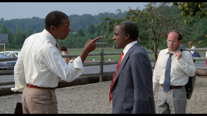 This new 1080p transfer of Lean on Me was sourced from a fresh 4K scan of the original camera negative, and the end result is as appealingly film-like as anything Warner Archive has released from this era. Colors are bold and bright -- or appropriately dour -- when needed, fine detail is outstanding, black levels run deep, and organic grain is present every step of the way. Simply put, this is a truly five-star effort that shines on Blu-ray and, like the boutique label's very best efforts, pushes the format's visual boundaries as much as possible. As seen in these direct-from- disc screenshots, it's an incredibly strong effort overall so fans of this film should buy with absolute confidence.