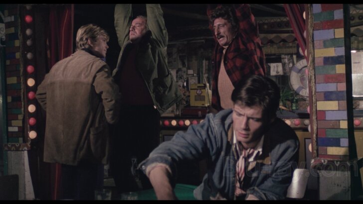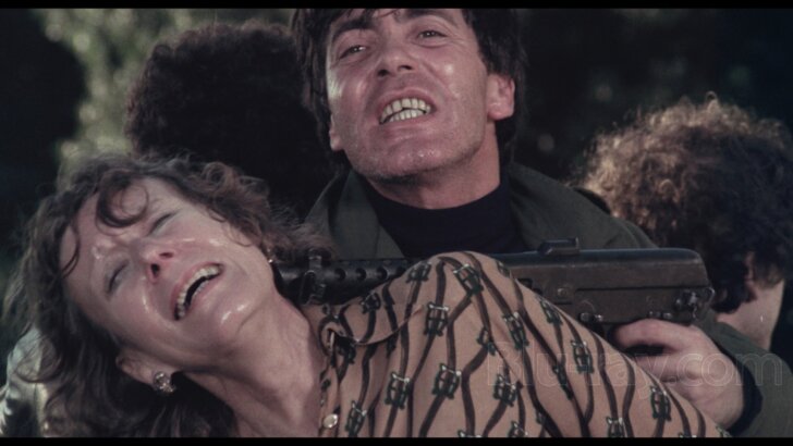 The release introduces a recent 4K restoration of the film that is quite the disaster. The crucial flaws of the restoration are present on countless other restorations of color films completed at L'Immagine Ritrovata. All native color values are dramatically altered and the dynamic range of the visuals compromised. As a result, delineation, clarity, and depth are routinely very problematic, leaving the impression that the film has been heavily filtered. However, the raw 4K files are not filtered. The film looks as it does because when it was regraded, various other anomalies were introduced as well. Indoor and darker footage can be especially problematic because virtually all darker nuances are destabilized in some way. (You can see the effects of the anomaly in screencapture #2). Obviously, all of this is enormously frustrating because the 4K files easily could have produced a 'reference quality' presentation of the film with a proper, faithful color grade.
