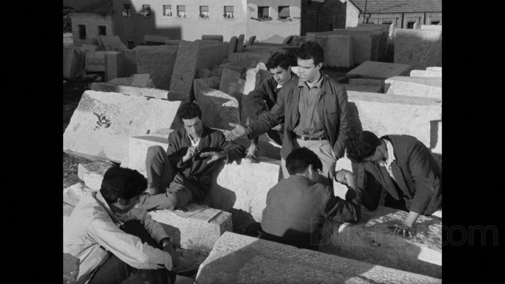 This version of Los Golfos (Carlos Saura, 1959( was made at the Filmoteca Española by digitising the 35mm acetate image and sound negatives. The missing fragments from the negative were obtained from other various available sources. All these elements are kept at the Filmoteca Española. The goal of this project has been to restore the version most faithful to the one originally submitted to the censor board. We thank Films 59 for providing key documents and information for the completion of this project. Special thanks and recognition to Pere Portabella.Considering the "slicing and dicing" this film experienced decades ago, this is a remarkably consistent and heterogeneous looking presentation. The black and white cinematography is supported by great looking contrast, and at least in the more relatively controlled environments, detail levels are also typically excellent. There are some noticeable variations in clarity and even occasionally slightly with regard to grain structure, but the overall appearance here is commendable. There's some very slight image instability during the credits, but otherwise no real damage of any import.