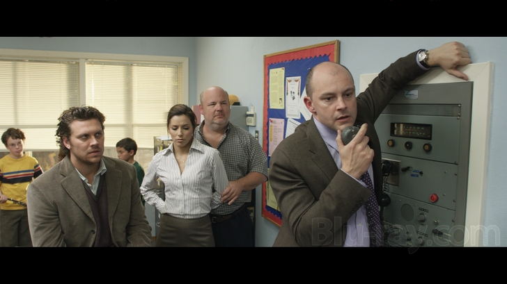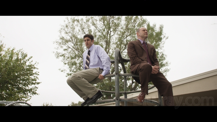 Lower Learning enrolls on Blu-ray with a solid 1080p, 2.39:1-framed transfer. Colors are strong, natural, and many; green chalkboards stand out in every classroom, but the image is made whole by the abundance of color posters and clothing scattered about most every frame. Detail, too, is sharp; chips and scratches in wooden desks or dents and torn stickers on lockers are examples of the nicely-rendered and realistic-looking objects found throughout the film. Shot on video, the image doesn't sport much noise and takes on neither tremendous depth nor a terribly flat appearance. Various interior scenes can appear somewhat hazy, particularly in Billings' office where sunlight shines in brightly through practically transparent curtains and competes with the dark wooden furniture and otherwise low lighting levels. Additionally, flesh tones take on a pleasant and natural appearance throughout. Despite the budget price and under-the-radar nature of this release, Starz has given Lower Learning a surprisingly handsome 1080p transfer.