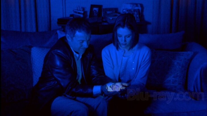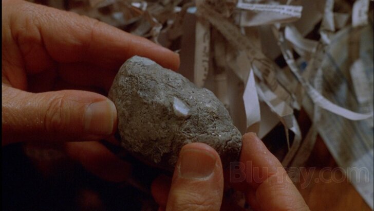 At his place, after downing a double shot of whiskey, Maurer empties the briefcase and discovers the dead man’s name, a napkin with a phone number, and a miniature box with a tiny stone in it. Later that night, after Maurer turns off the lights to go to sleep, the stone comes alive and fills his apartment with a strikingly rich blue light.