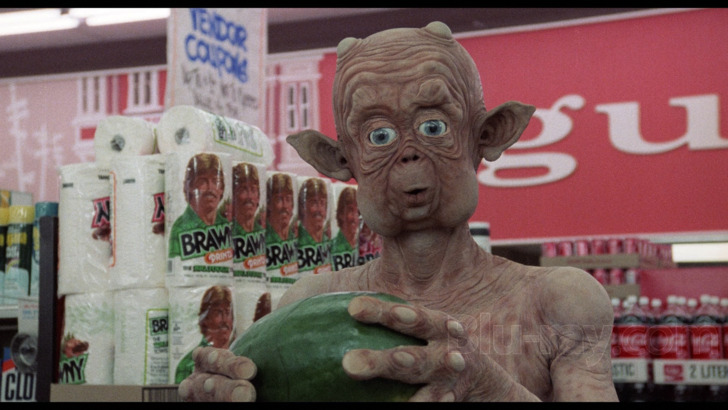 "Mac and Me" offers dewy synth accompaniment and makes a play for the heart on the few occasions, but it's a cynical endeavor that's hoping to ride on the coattails of "E.T." Director Stewart Raffill packs the picture with strange ideas on adorability, erratic turns of tone, and enough product placement to make Michael Bay salivate, trying to make sense of material that's filled with puzzling behavior and ideas on kid film entertainment. However, the picture has its admirers, and Vinegar Syndrome tries to give them something to celebrate with the UHD, which now looks and sounds pleasingly cinematic, boosting whatever pass at entertainment "Mac and Me" is trying to deliver.