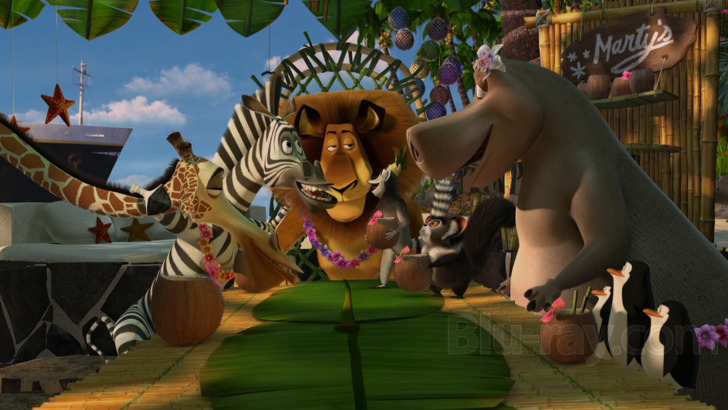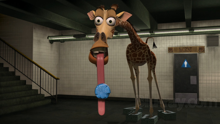 The addition of a Dolby Atmos track is most welcome, but those looking for something as bombastic as the mayhem and antics that sometimes take over the story will instead be surprised at how restrained the whole affair is. The track does open up the sound stage a bit, though the greatest gains here are more subtle than overt. There is a substantial but balanced LFE presence adding depth to sound effects such as the collapse of the wooden Statue of Liberty, which they intended to ignite to signal potential rescuers. It also adds the needed depth to the moments when the score comes to the forefront. The track is frequently but intermittently immersive, carefully choosing its moments to surround the viewer in the film's world and then receding to let the focus return to the dialogue and the on-screen action. But when so leveraged, surrounds add enjoyable ambient environmental sounds to place the audience in the midst of locations like the crowded lemur village. Here, too, such elements are more reserved and never dominate or overwhelm, tending to suggest more than overshadow. Heights are used in support of both music and effects, such as adding realism to the helicopters during the escape sequence. Directionality is spot-on, allowing viewers to track footsteps and other sound elements through the sound field, and move quite fluidly. Dialogue is clean and clear, always intelligible even when the four principal characters excitedly talk over each other. Music is handled well, and strings are crisp and precise. The sonic highlight, it should come as no surprise, is still the track most associated with the film - the relentlessly thumping earworm that is "I Like To Move It, Move It".