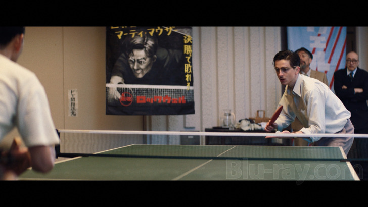 Marty Supreme features a really fun and immersive Dolby Atmos track. As is addressed in some of the supplements, the film offers a deliberately disjunctive soundtrack that offers both period appropriate fifties material but also anachronistic (stylistically if not content wise) tunes from the eighties. It's an audacious strategy, as so much of this film is, and if some may quibble with the actual upshot of the disconnect, all of the source cues are spaciously presented and many have nicely full lower ranges. The film's ping pong tournaments are all standouts from a sound design perspective, and I'll simply state with unavoidable punning that these vignettes often offer ping ponging channelization. Dialogue is presented cleanly and clearly throughout. Optional English and Spanish subtitles are available.