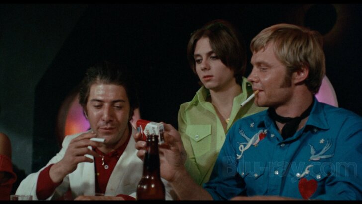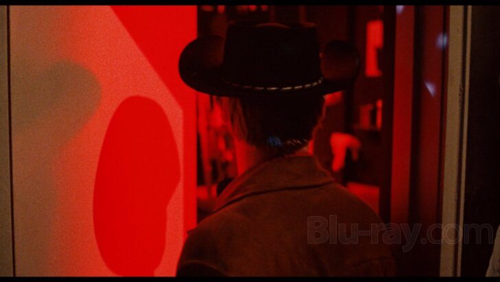 Midnight Cowboy looks great in native 4K, which should not be surprising because the 4K restoration is excellent. I think that folks with very large screens will be most satisfied with the quality of the native 4K presentation because all visuals now have an even more pleasing organic appearance. However, in native 4K, the drops and spikes in grain exposure, which are caused by different unique lensing choices, are a lot more pronounced as well. In other words, there are shifting density levels that the native 4K presentation exacerbates quite a bit -- or at least when compared to the previous presentation of the 4K restoration in 1080p. The Dolby Vision grade is convincing. I liked how several of the flashbacks and short dreamy sequences looked better on my system. Also, the party footage with the rich red lights looked great. In other words, the expanded color gamut of 4K is not difficult to appreciate, and the good Dolby Vision grade helps many areas look more attractive now. Of course, the 1080p presentation of the 4K restoration is still mighty impressive, so I really do believe that viewing the native 4K presentation of it on different 4K systems will be appreciated differently. On my system, the expanded color gamut with the improved dynamic range of the visuals was the most satisfying upgrade. I could see the effects of the superior density levels, but I did not find them to be as consequential and pleasing in the same way. I did not encounter any encoding anomalies to report in our review.