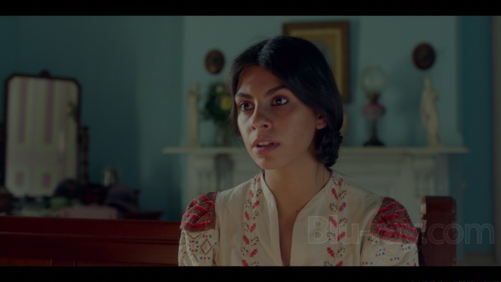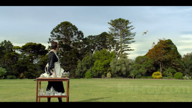 Miss Fisher and the Crypt of Tears features a nicely boisterous DTS-HD Master Audio 5.1 track that gets good mileage (in more ways than one) out of "vehicular" scenes like the escape on the train or the later entrance via biplane (even later scenes have a pair of biplanes soaring over the desert). Several crowded scenes in both Palestine and England also offer good engagement of the surround channels. The fun score, which features plenty of era appropriate music, also wafts through the side and rear channels winningly. Dialogue is offered cleanly and clearly throughout this problem free presentation.