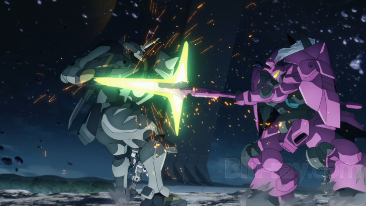 Released on Blu-ray by Crunchyroll, Mobile Suit Gundam: The Witch from Mercury - Season 1 is presented in 1080p MPEG-4 AVC encoded high-definition in the original television broadcast aspect ratio of 1.78:1 widescreen. The presentation on the release is outstanding. The animation looks crisp and well-detailed. Background animation and line art look stellar. The clarity of the visuals adds a lot to the entire visual sensibility of the production. The encoding also capably handles the action sequences and brings them to another level of excellence.