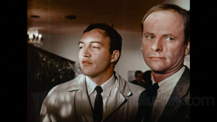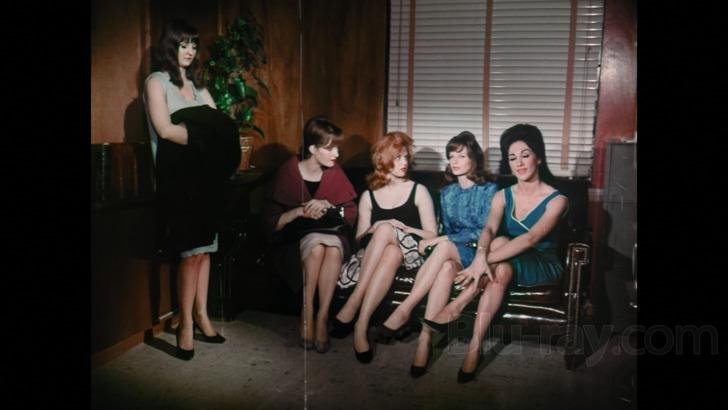 Moonlighting Wives is presented on Blu-ray courtesy of Film Movement Classics, an imprint of Film Movement, with an AVC encoded 1080p transfer 1.33:1. As is typically the case with Film Movement releases, there's no real technical information imparted on the cover, other than a generic "2K digital restoration" in some very fine print. The best thing about this presentation is its palette, which is still rather nicely intact, though it's easy to spot color temperatures varying from moment to moment. As can probably easily be gleaned in virtually any screenshot I've uploaded to accompany this review, the element is really badly and ubiquitously scratched, with many large green (typically but not always vertical) scratches covering the entire frame and lasting for quite some time. Despite the abundant amount of age related wear and tear on display, there also seems to have been some high frequency filtering done, since grain is not very evident.
