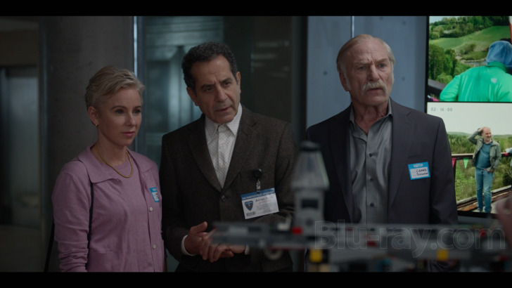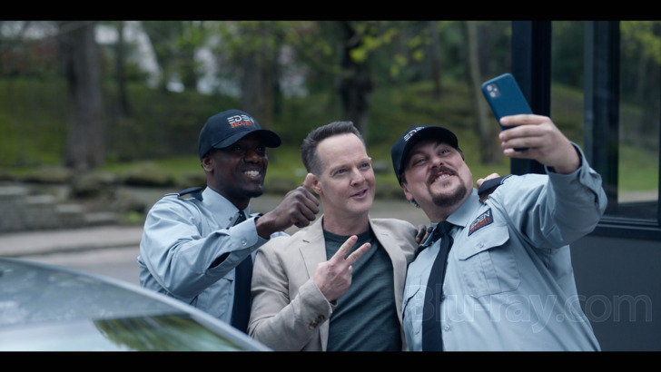 Kino brings Mr. Monk's Last Case: A Monk Movie to the Blu-ray format with a crisp and efficient 1080p transfer. It's clean, digitally shot, and doesn't really look at all like the seasons in terms of technical aesthetics, since the show was shot on film. It's a little jarring, having just come off of a full series watch over the last months, but for what it is it looks very nice. There's detail aplenty, with fine facial lines, clothing density, and the like showing every nook and cranny and fine point detail one could possibly ever want to see, especially on the aged characters, which takes some getting used to. But the picture is absolutely everything it should be in terms of clarity and revelatory detail. Colors are very good too, with all the boldness and accuracy one could possibly want from a TV movie. It's not extraordinarily colorful, there's not any real color grading that betrays a fairly straightforward, normal looking appearance, so the fullness and richness simply play it straight down the middle. There's plenty of vibrancy at work, especially outdoors. Skin tones are healthy and black levels are pleasantly deep. I did not notice any major bursts of noise, nor was there any banding, aliasing, or the like. This is a fine transfer from Kino.