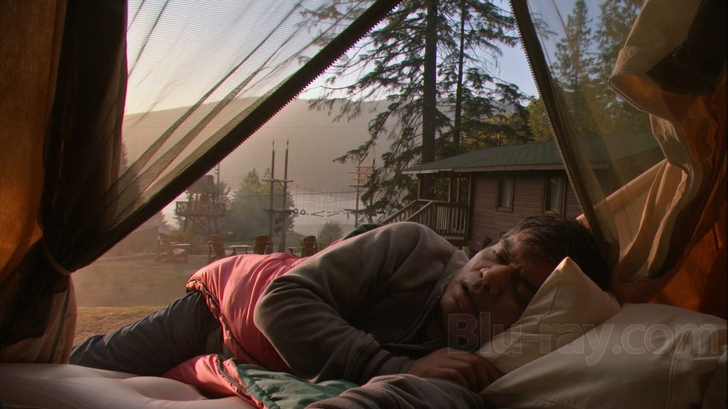 Mr. Troop Mom's banal Dolby TrueHD 5.1 surround mix isn't much better. It thumps its chest and roars as loud as it can, but it lacks the prowess and precision of more delicately crafted lossless tracks. Case in point: while a blaring soundtrack tends to overwhelm the soundscape with lethargic bass beats and muddled guitar riffs, the rear speakers are surprisingly subdued. Distant crowds are seemingly comprised of mimes, the forest has apparently been evacuated, and the wind has little impact on the trees (at least so far as the film's underdeveloped soundfield is concerned). Likewise, LFE output is robust but unwieldy, burdening lighter effects with the same one-size-fits-all support given to collapsing structures and tumbling campers. Worse still, dialogue is all over the place. Thin and hollow one moment, dense and unrefined the next, voices are at the mercy of environmental elements, inept sound design, and obvious post-production looping. While I doubt the folks at Warner could have spruced up the mix any more than they already did, the end result can't even compete with other television audio tracks on the market. Average at worst, adequate at best, Mr. Troop Mom sounds as unexceptional as it looks.