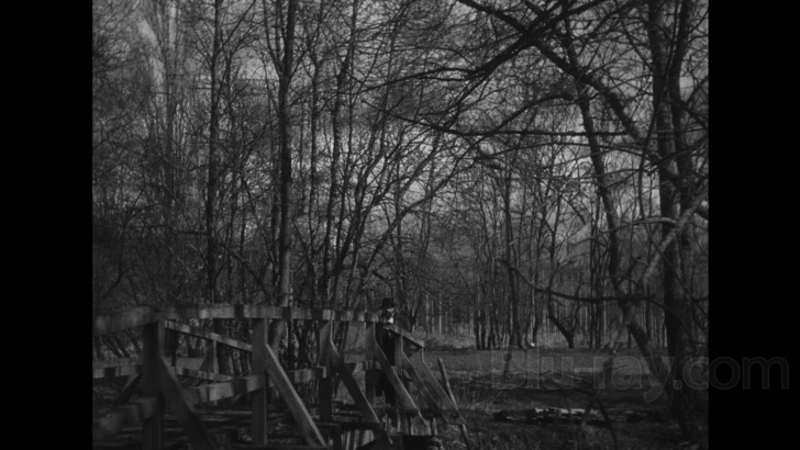 Not Guilty is presented on Blu-ray courtesy of Radiance Films. Radiance sent a check disc for purposes of this review, and so I'm not privy to any information on the transfer included in an insert booklet, but some prefatory text before the main feature states this was "restored in 4K from the nitrate film negative and the nitrate sound negative" while giving additional information about the newly discovered alternate ending. This is a really lustrous looking presentation for the most part, and despite any assertions by the Nouvelle Vague that Decoin was somehow "stodgy", his work with cinematographer Jacques Lemare is really quite evocative throughout. Hinting at noir sensibilities recurrently with some near chiaroscuro lighting choices, the film makes the most of both cloistered interior locations, like the almost grotto garret where the good (?) doctor likes to knock back a few, to some almost spookly looking outdoor material featuring deciduous trees completely shorn of their leaves in the winter. Blacks are appealingly deep and gray scale well modulated. Grain resolves without any issues. Some slight instability can be spotted in the opening credits.