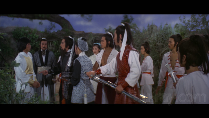 Ode to Gallantry is presented on Blu-ray courtesy of Eureka! Entertainment with an AVC encoded 1080p transfer in 2.35:1. As usual, Eureka! doesn't really provide any substantial technical information on the release, though having reviewed a veritable glut of these Celestial Pictures restorations at this point, this has the same generally excellent look that Celestial has been bringing to their immense Shaw Brothers project. This is another nicely vibrant looking presentation with a striking palette, and this time, unlike the more "modern" setting of The Daredevils, there's finery aplenty in both costuming and sets that not only provides lots of color, but nicely precise fine detail levels. This has some old school composited effects and there can be very slight downturns in clarity and upticks in grain during those moments. The opening few minutes have a slight but noticeable brownish quality.