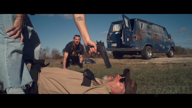 Off Ramp has ben given a commendable AVC-encoded 1080p presentation. Fittingly, the film's most vibrant moments are the clips and scenes