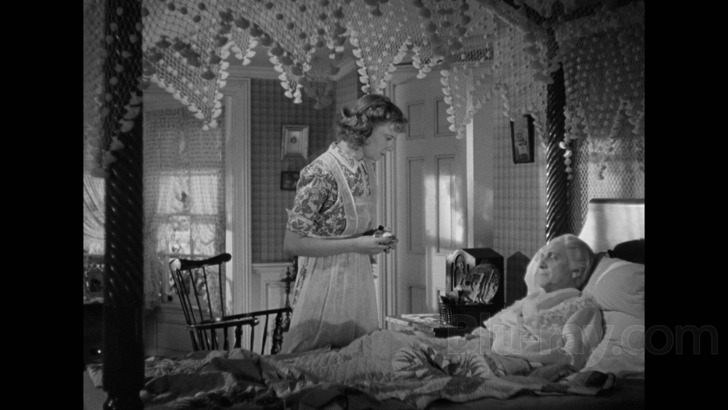 Things change when Death shows up to claim Julian, but he's not willing to go yet and the well-dressed man vanishes after Nellie -- or "Miss Nellie", as "Gramps" calls her -- calls him in for lunch. Although it's apparent that this visitor can only be seen and heard by those he's coming for, strangely enough little Pud is aware of his presence too. Death comes again a second time, but Julian has a trick up his sleeve: he asks Mr. Brink to retrieve an apple from his tree... but due to a wish made several days earlier, anyone who climbs its branches can't come down until Gramps says so. This gives the tree an unplanned side effect of instant death if anyone touches it; aside from that, everyone's basically immortal for the time being. His trick can't last forever, but that's where On Borrowed Time's real magic comes from: it's a story about accepting the end of life when it arrives, which proves to be pretty tough for any stubborn old goat.