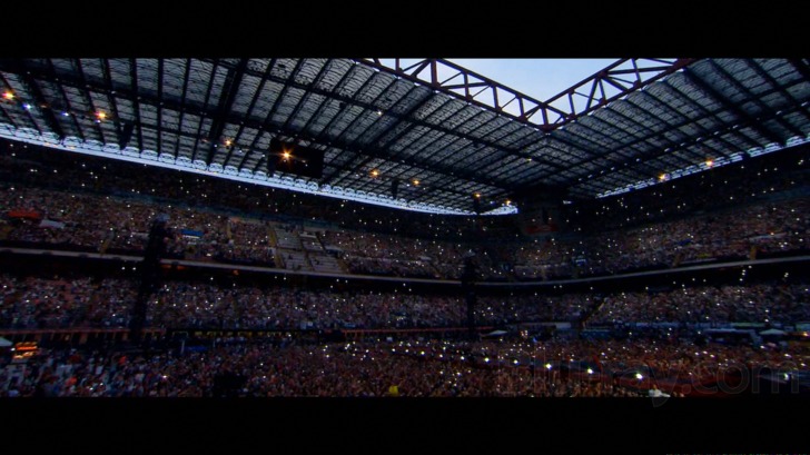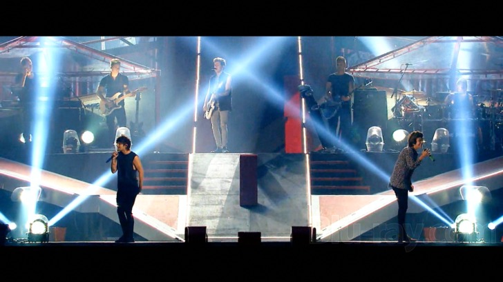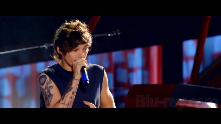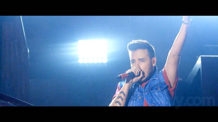 One Direction Where We Are — Live From San Siro Stadium is presented on Blu-ray courtesy of Sony Music with an AVC encoded 1080i transfer in 2.39:1. I was actually pleasantly surprised to discover this was an interlaced presentation, for when watching it, I had come to the incorrect conclusion that it was progressive based on the nice lack of any traditional issues like combing artifacts. This is in fact a generally extremely sharp and well detailed looking concert video, one that benefits from the almost insane array of cameras covering the action, which include everything from drones offering high altitude views of the entire massive arena to what hopefully were not drones getting virtually up into the nose hairs of the One Direction members. Colors are precise and accurate looking and contrast is consistent. There are still a few very minor issues that some videophiles may notice. Banding is in evidence, though in surprisingly minor amounts given the huge lighting effects utilized throughout the concert. There's also some very brief posterizing when bright lights are aimed directly at the camera and light spills onto nearby objects.