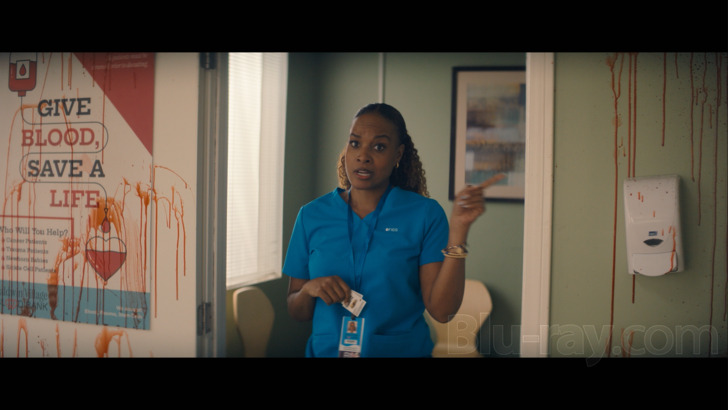 Bright, colorful and dripping with primary power, One of Them Days' 1080p/AVC-encoded video transfer looks every bit as good as it should. Aside from some errant black and red crush, both of which are exceedingly minor, there isn't anything to complain about. Skintones are warm and lifelike, the palette is full of summery punch and beautifully contrasted flavor, shadows are deep and inky, and elements like the reds that accompany the blood bank scene are gorgeous (and that much more hilarious as a result). Detail is excellent too. Edge definition is crisp and clean, fine textures pop, and there isn't any noise, banding or blocking present that might muck up the clarity. Moreover, the image is decidedly digital but has enough filmic wherewithal to hold its own, sidestepping grain but leaving plenty of room Ava Berkofsky's cinematography to establish its groove.