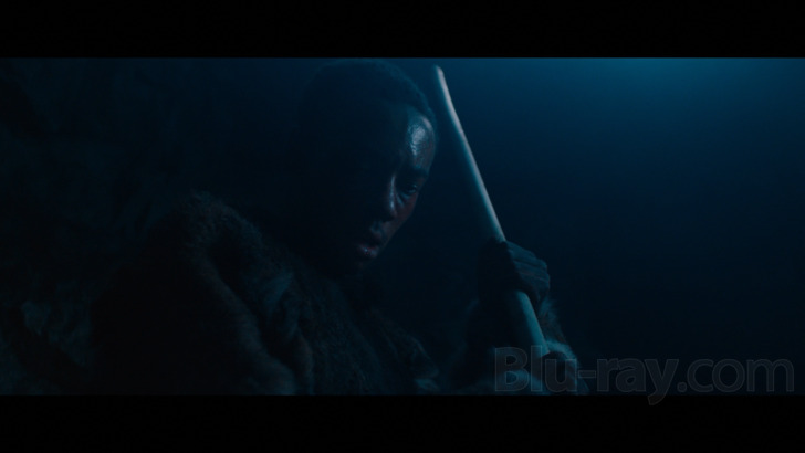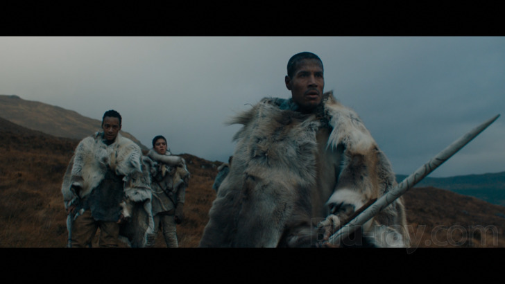 The AVC encoded image (2.39:1 aspect ratio) presentation deals with the spare environments of "Out of Darkness," which spends most of the run time in exteriors. The darker depths of the dangerous terrain are preserved, exploring the vastness of the locations as movement goes from mountainous areas to a forest. Detail is strong on skin particulars, examining grimy characters and bloody wounds. Costuming remain fibrous with rougher animal skins. Color stays cooler, examining the grays and whites of protective clothing, while barren landscapes retained their ominous appearance. Forest experiences carry richer greenery, and red blood is distinct. Delineation is mostly satisfactory. Compression issues are periodic, with banding present.