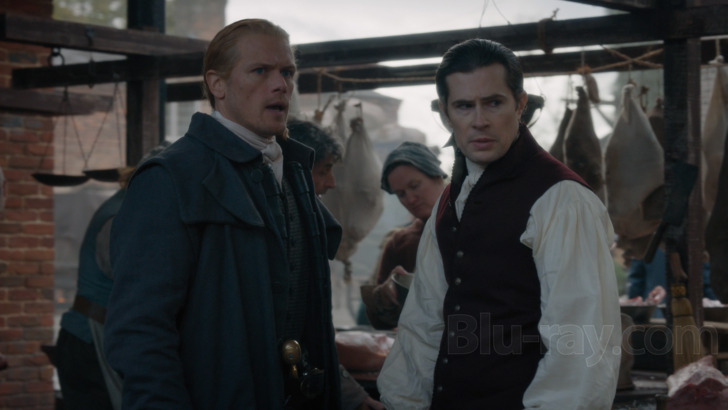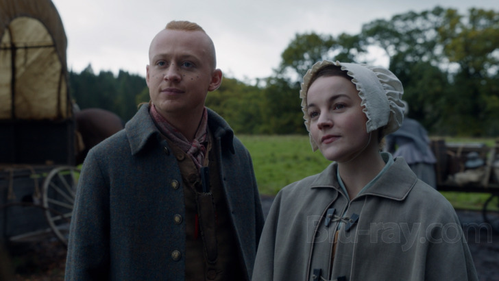 Like the series' previous Blu-ray releases, Outlander: Season Seven looks every bit as good as one would hope it would. The show's color palette is represented beautifully, with strong but natural hues bolstered by rich primaries (particularly reds), consistently lifelike and convincing skintones, and well-resolved black levels and shadows. Delineation is as revealing or as concealing as it's meant to be, without any sign of crush or other issues that might obscure the series' magnificent production design and costuming. Detail is exceptional as well, with crisp, clean edges, free of any ringing or artificial nonsense, and wonderfully refined textures that lend a tactile appearance to fabrics, forest floors and other elements. Sony has also granted Season Seven a generous number of discs, meaning each episode has plenty of room to breathe without succumbing to or displaying any significant compression anomalies. Banding is also MIA, making for a near-perfect presentation that rarely, if ever, falters.