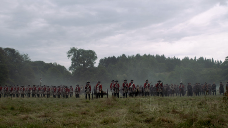 Sony's DTS-HD Master Audio 5.1 surround track is comparable to those of past seasons as well. Dialogue is clear and intelligible at all times, even when cannons are blaring and rifles are crackling. Prioritization is precise and the only disappointment, if it can even be called as much, is that a few too many scenes are extremely front-heavy, though that's the nature of a conversational drama. Thankfully, when the rear speakers are called upon they get the job done. Directionality is especially convincing during battle sequences, channel pans are always silky smooth, and the soundfield is immersive and enveloping anytime the series moves outdoors. Interior spaces are suitably stuffy and confined, and tents offer a nice balance between distant sounds and closer events. Likewise, LFE output is strong and steady, giving the war at hand enough weight and oomph to make combat a chest-thumping experience.
