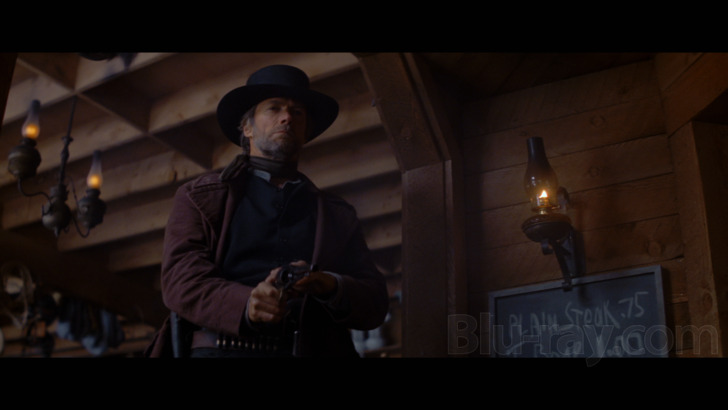 Closer in tone to the design of Josey Wales than Dirty Harry (for obvious reasons), this similarly matte-finish Steelbook evokes more of a classic poster design with an intentionally weathered appearance; front and center is "The Preacher" gnashing his teeth in front of a hazy sun while below we see the imposing silhouette of LaHood's gang on horseback. On the back is a silhouette of The Preacher approaching the town, while inside is a traditional still of him riding in the daytime. Although the outside doesn't really represent the film's color palette, it's nonetheless a striking design overall that certainly stands out more than the regular version.