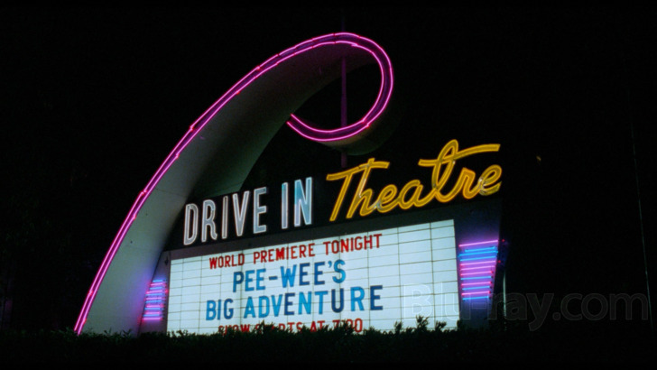 The 5.1 DTS-HD MA mix from the previous Blu-ray release is present on the disc, but the default choice on the UHD is a 2.0 DTS-HD MA track, which Criterion recommends enabling "Dolby Pro Logic decoding on your receiver to properly play" the mix. The 5.1 experience shows its age and limitations, with the 2.0 offering more natural and inviting. Dialogue exchanges are clearly delivered, securing sometimes strange performance choices and yelling matches without slipping into distortive extremes. Scoring remains sharp and balanced, supporting the cartoon moods of "Pee-wee's Big Adventure" with authority. Soundtrack selections are also defined. The listening event maintains a wider presence as times, and sound effects are distinct.