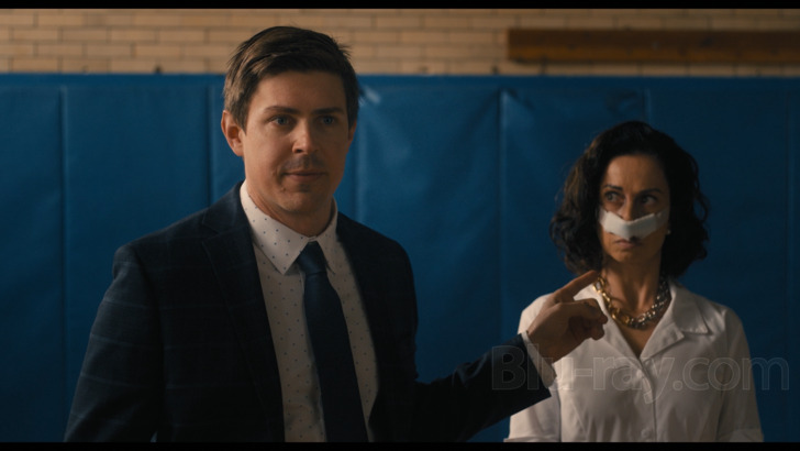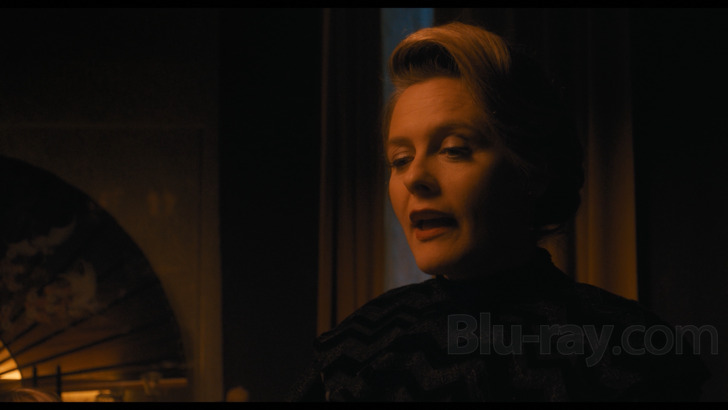 Perpetrator is presented in its original 1.85:1 aspect ratio with DTS-HD Master Audio 5.1 surround sound. The high definition master was provided by AMC / WTFilms.There's some really interesting information available in this interview with director of photography Sevdije Kastrati which discloses the Sony Venice was utilized, though it's unclear to me what resolution the DI was. One way or the other, this is a pretty stunning looking presentation a lot of the time, and if that aforementioned "Bave-esque" element may be in the eyes of various beholders, there are some really interesting lighting and grading choices utilized throughout, including a number of jaundiced yellow scenes and others bathed in either blue or red. All of these varying hues can marginally affect fine detail levels, though perhaps by not as much as might be assumed. The widely variant palette can tend to affect shadow detail as well, and a lot of this film is swathed in darkness. All of this said, things can pop amazingly well, as in the late scene that is literally bathed in blood.