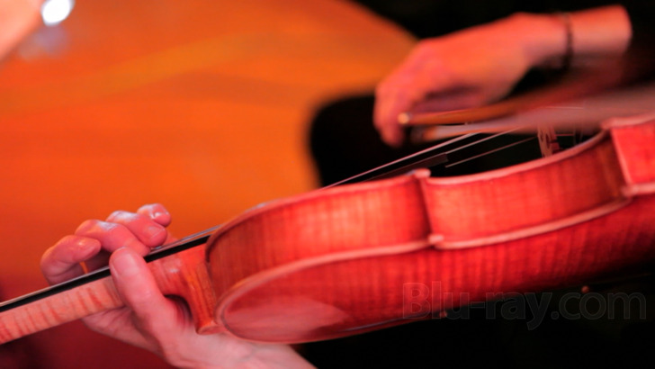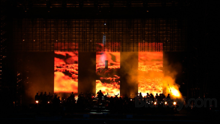 Peter Gabriel: Taking the Pulse is presented on Blu-ray courtesy of Mercury Studios with an AVC encoded transfer in 1.78:1 (some split screen material is windowboxed, as seen in screenshot 7 accompanying this review). My equipment is showing an interlaced presentation, while the back cover claims this is progressive. This is another really stunning production from Gabriel, and it receives a mostly great looking transfer here, with the one possible hiccup being that interlaced presentation. Combing artifacts are pretty noticeable in some fast motion, as in the opening (and recurrent) use of an old style metronome, where the pendulum shows such anomalies, or later when conductor Ben Foster raises the baton early on. Kind of interestingly later moments like some close ups of the string players sawing away with their bows don't have the same issue, at least not quite as obviously. That one stumbling block aside, detail levels are typically great despite any number of near psychedelic bells and whistles that are more than intermittently added to the imagery, and that same quasi- hallucinogenic quality keeps the palette vibrant throughout as well (though there are some black and white moments, as can be seen in some of the screenshots). While there's a slightly digital and processed look to the presentation, the fact that this was filmed in an outdoor venue and looks as generally good as it does is pretty remarkable.